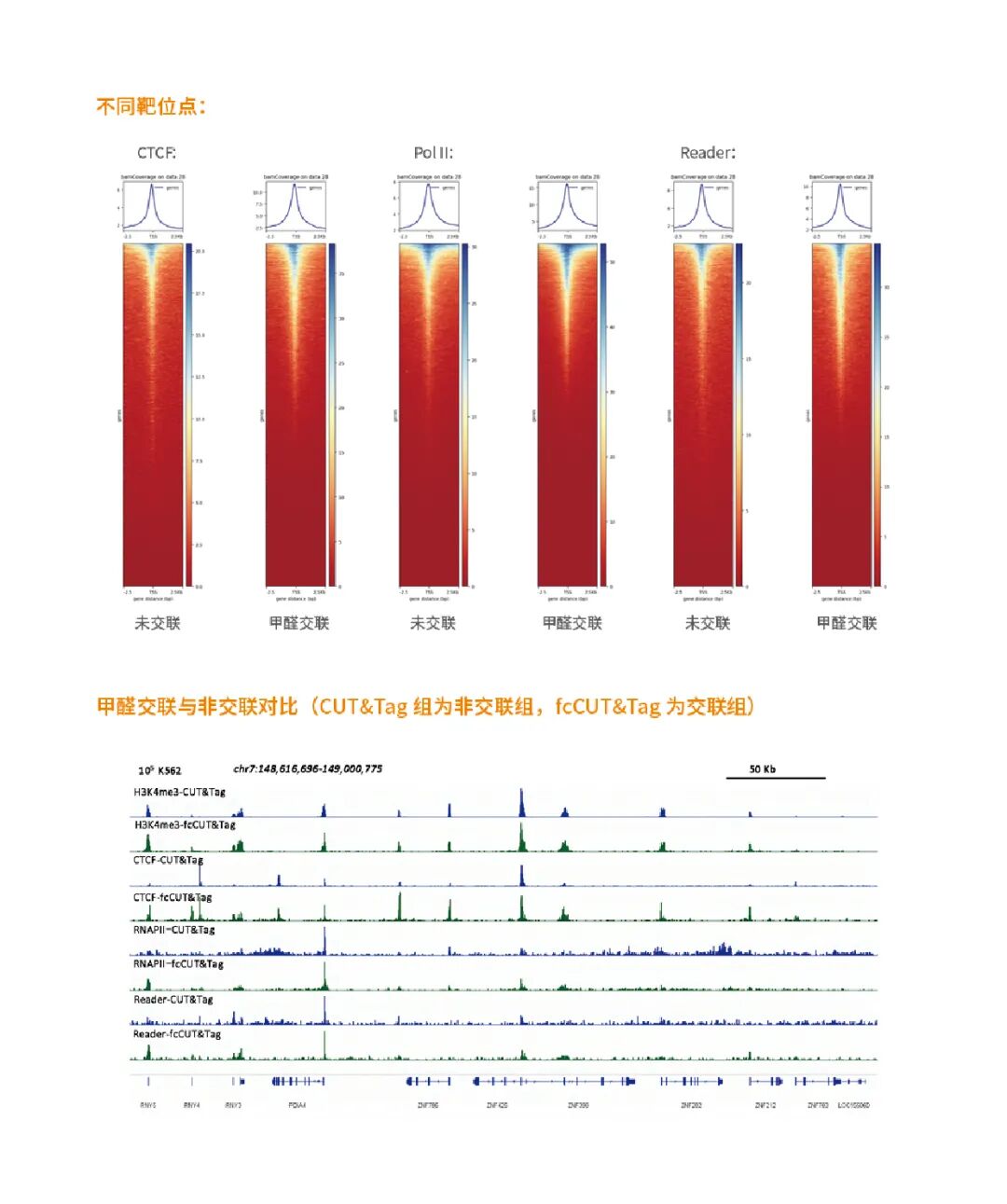 Tel:0755-21050468 , 15818505043 (微信同号) 龚经理 CUT&Tag® 4.0产品交联与非交联测序数据结果展示