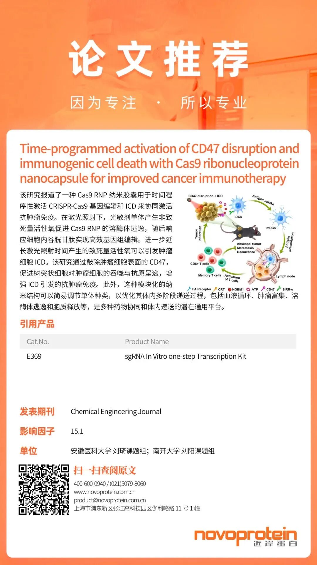 近岸蛋白深耕重组蛋白行业10余年,致力于为广大科研人员提供及时、稳定、优质的产品及服务,每年都有大量的科研成果在近岸蛋白产品的支持下成功发表,其中不乏各种国际顶刊。2023年9月,70余篇文章引用近岸蛋白ATAC试剂盒、CUT&Tag试剂盒、基础科研试剂、mRNA酶及试剂、类器官细胞因子、细胞治疗细胞因子等产品,其中最高IF为48,10分以上的文献就有十余篇。我们整理了部分9月份的高分文献,与大家分享。